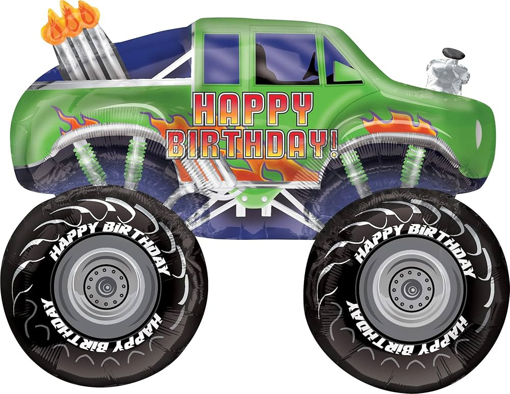 31 Inch Green Happy Birthday Monster Truck Foil Balloon