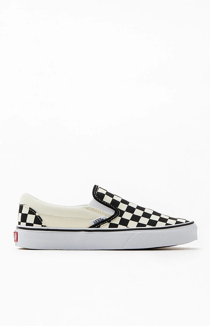 Vans Kids White & Black Checker Classic Slip-On Shoes in Black/White - Size 10.5