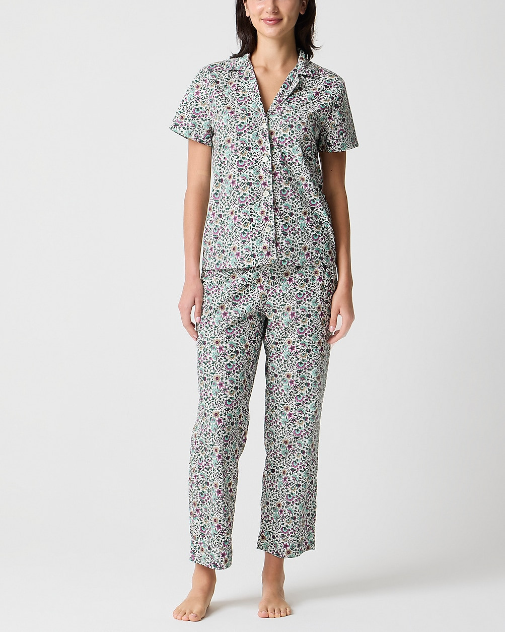 Short-sleeve printed woven top and cropped pant pajama set