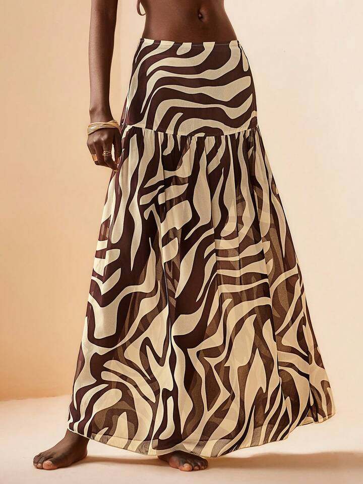 Opulessa 2pcs/Set Women's Knit Mesh Printed Crop Top & Low Waist Slit Skirt, Vacation Outfit, Spring/Summer Party, Club Outfits, Date, Night Out,Vacation ,Beach Outfits,Garden Wedding Guest Dress, Elegant Dress For Women,Sexy Elegant Party, Graduation,Prom, Going Out Outfit, Spring To Summer, Valentine's Day, Carnival Costume, Elegant Outfit For Party, Beach Outfit, Wedding Guest Outfit, Summer Vacation Outfits, Floral Outfit, Casual Sets