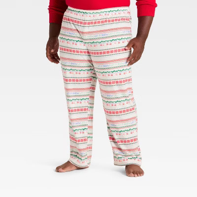 Men’s Big & Tall "Let it Snow" Fair Isle Microfleece Holiday Matching Family Pajama Pants - Wondershop™ Cream 3XLT