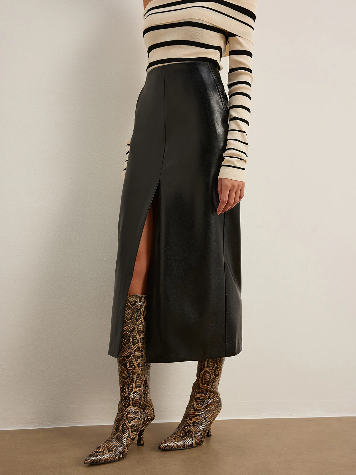 Double Sided Split Faux Leather Skirt