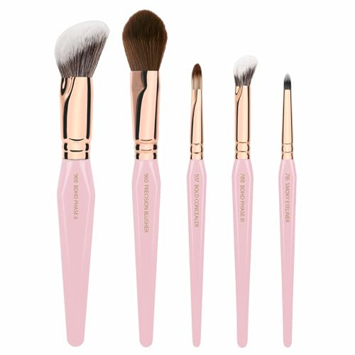 Bdellium Tools Pink Golden Triangle Face & Eyes Makeup Brush Set - Well-balanced Brush Set with Soft Synthetic Bristles and Rose Gold Brass Ferrule for a Variety of Looks (Pink, 5 pcs)