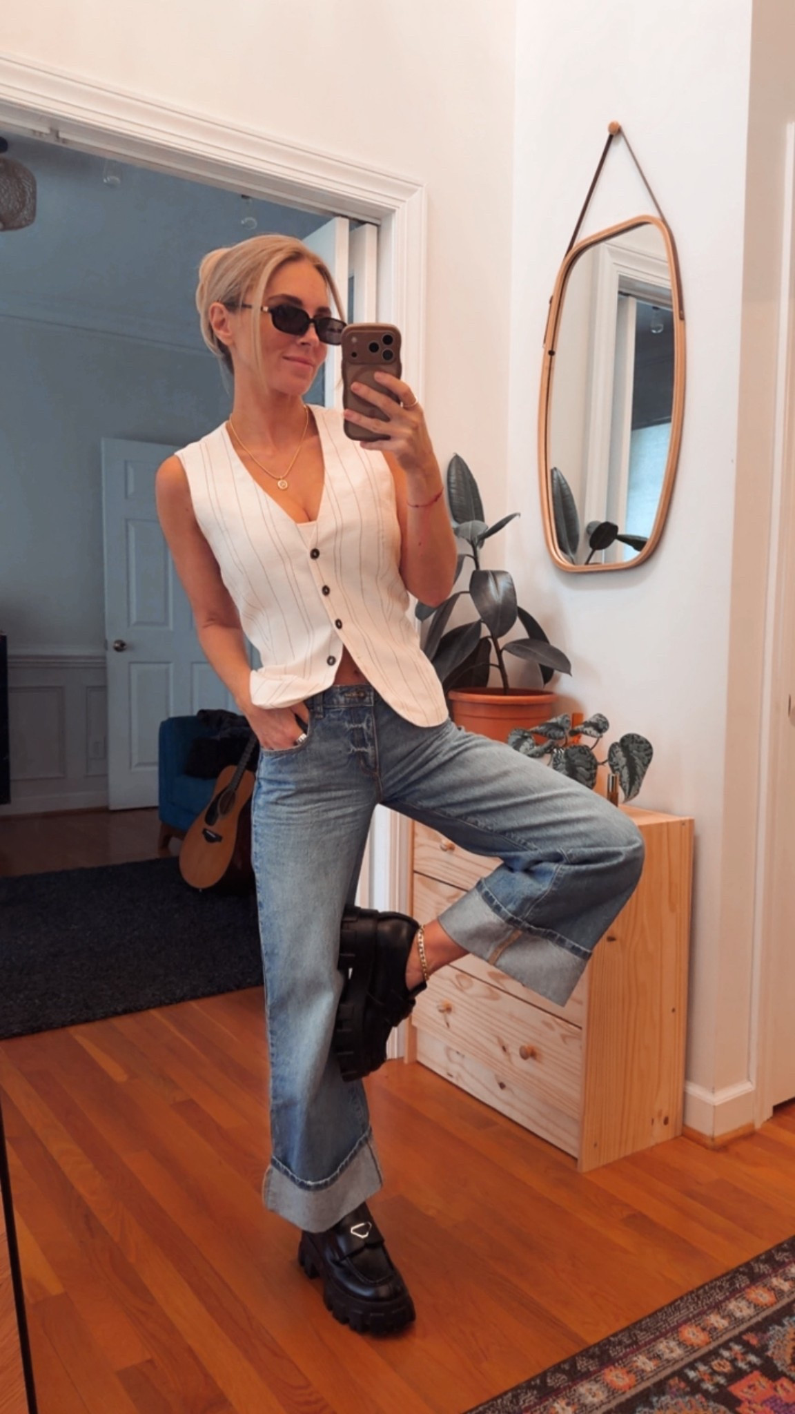 Tuesday fit π»β¨ + Evansville coffee mug π Repurposing a formal set by pairing the top with my go-to @target jeans (I own them in multiple colors because they go with literally everything π) and my comfy @stevemadden tennis shoes π. Obsessed with my @pavoi bubble ring andβ¦ not sure why my hair is standing so tall today but Iβm channeling news anchor energy π. Blue light glasses are a must πΆοΈ these came in a 3-pack so I can match them with whatever. Everything is linked in my LTK in bio π€ TuesdayFit OOTD TargetStyle SteveMadden PavoiJewelry LTKstyle ForYou StyleInspo Workwear