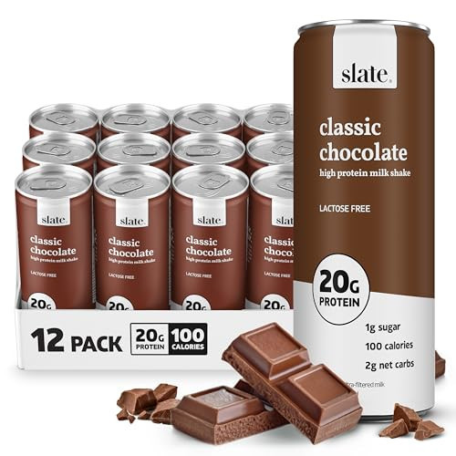 Slate Milk - High Protein Milk Shake - Classic Chocolate - Lactose Free, 20g Protein, 1g Sugar, 100 Calories, 2g Net Carbs, No Added Sugar - Natural, Breakfast Boost, Post Workout - 11 fl oz, 12 Cans