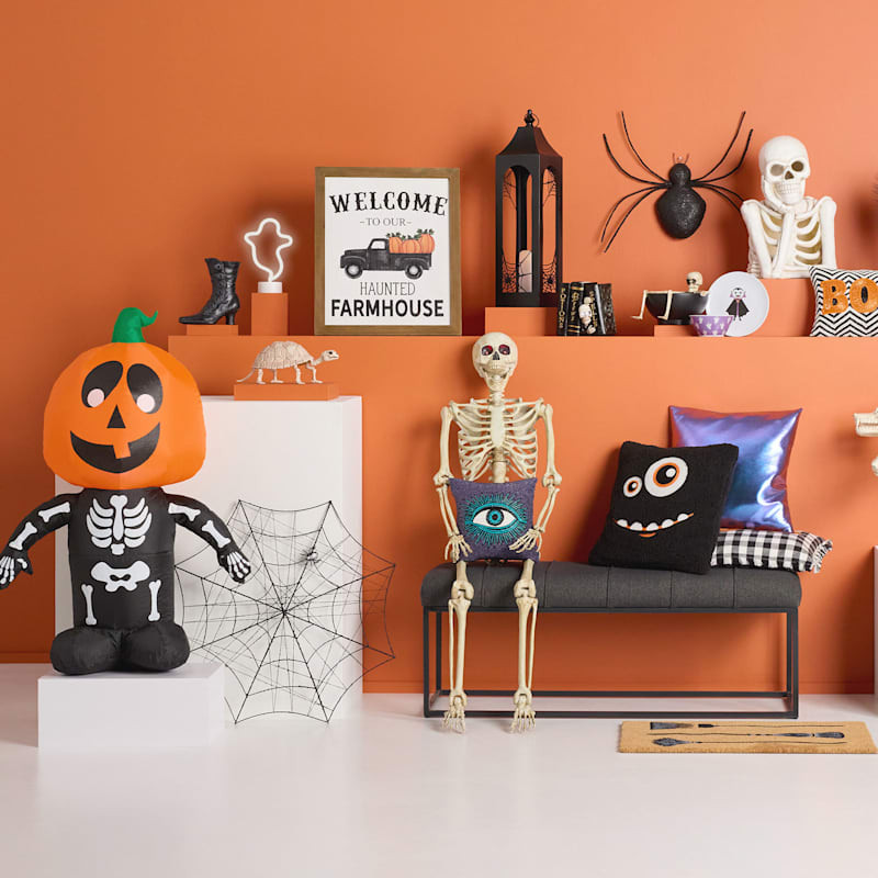 A variety of indoor and outdoor Halloween decor