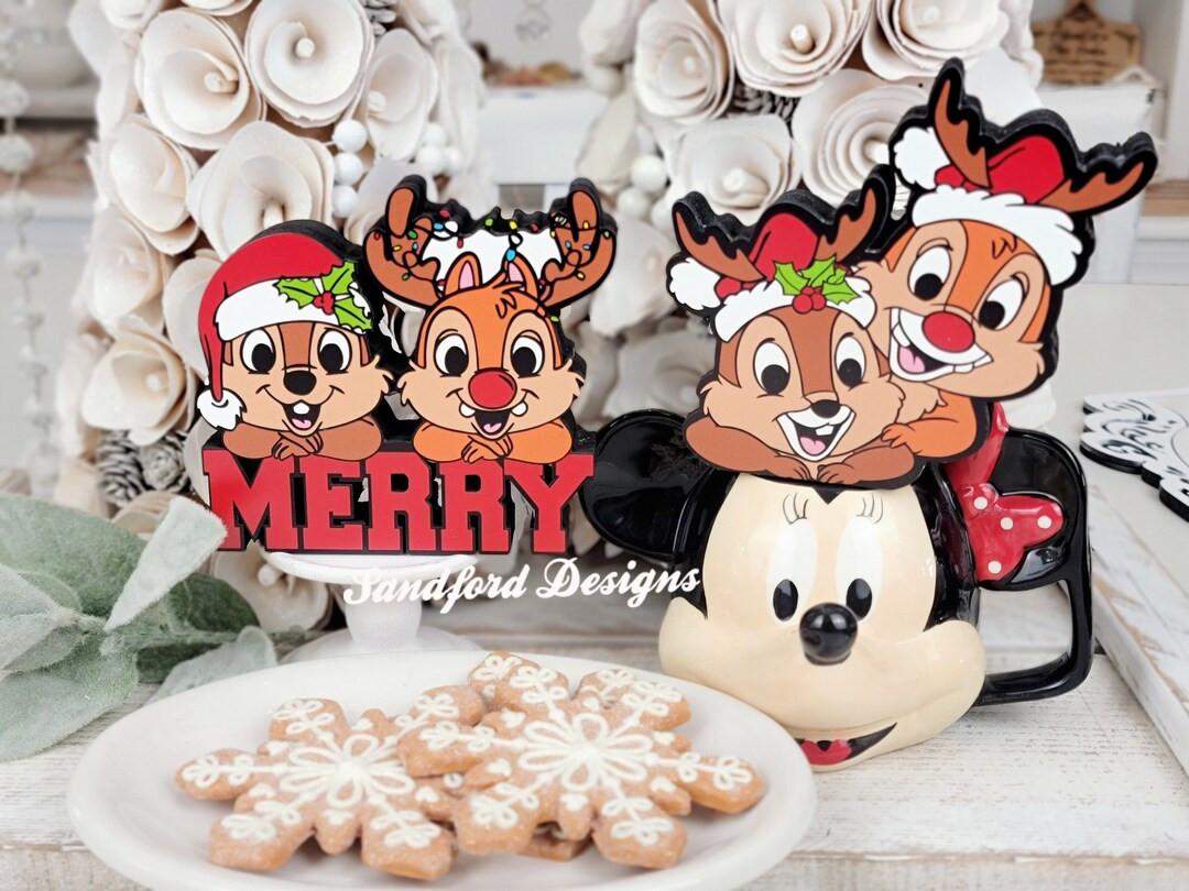 Chip and Dale Christmas Tiered Tray Decor, Disney Reindeer Decor, Disney Chipmunk Sign, Disney Ch...