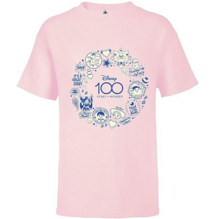 Disney 100 Pixar Happy Faces Blue Sticker Circle D100 - Short Sleeve T-Shirt for Kids - Customized-S