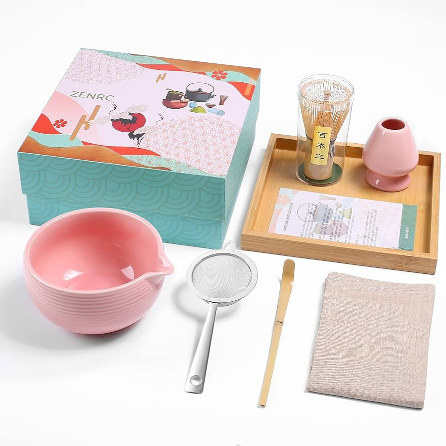 Ceremony Matcha Kit - Traditional Bamboo Matcha Whisk (Chasen) Scoop (Chashaku) Chawan Bowl with ...