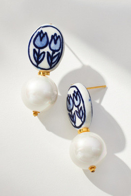 Floral Porcelain Pearl Drop Earrings