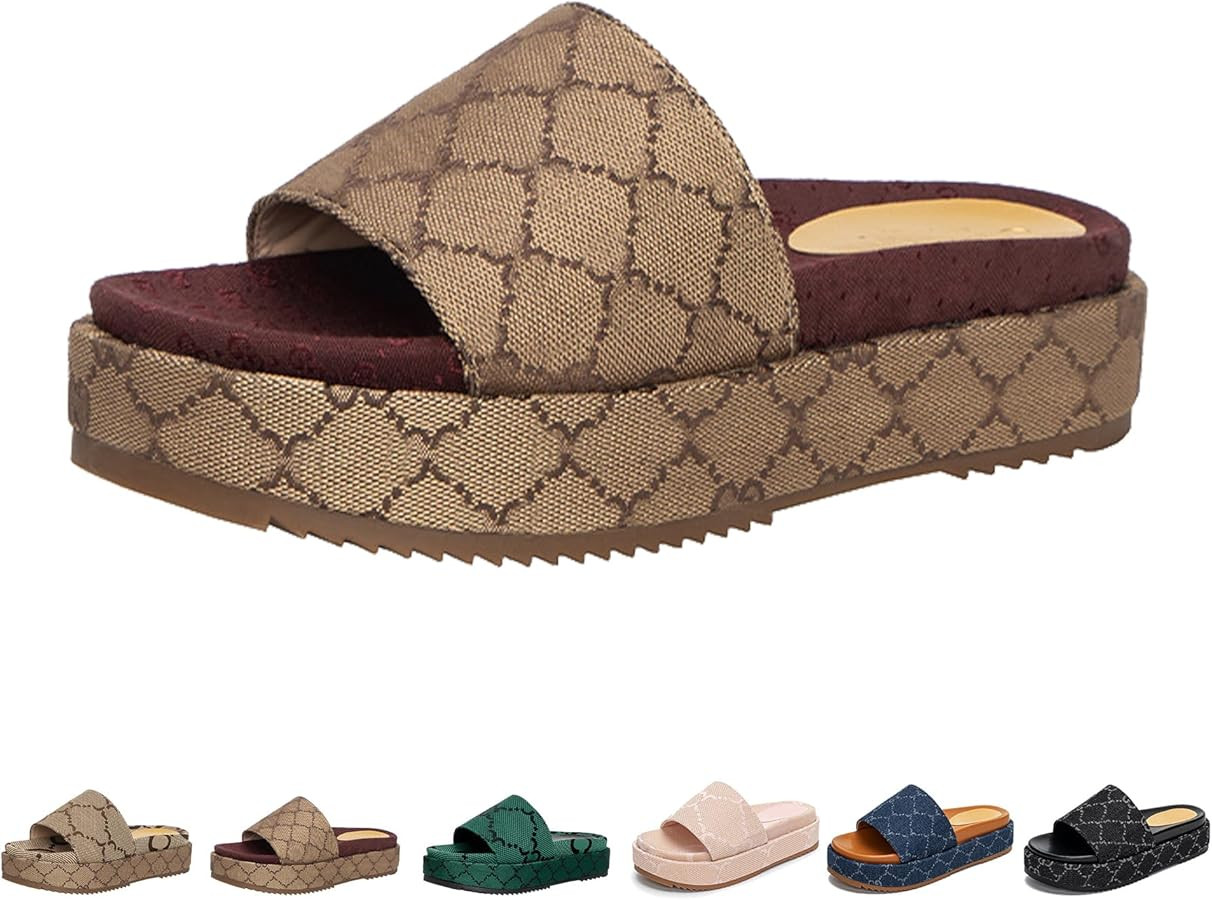 Women's Platform Slide Sandals Comfortable Wedge Espadrille Slides with Cushioned Footbed Fashion...