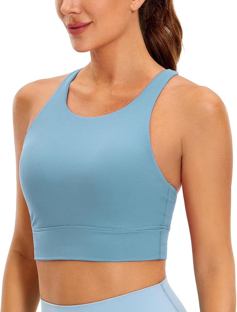 CRZ YOGA Womens Seamless Ribbed Longline High Neck Sports Bra - Racerback Padded Slim Fit Crop Ta...