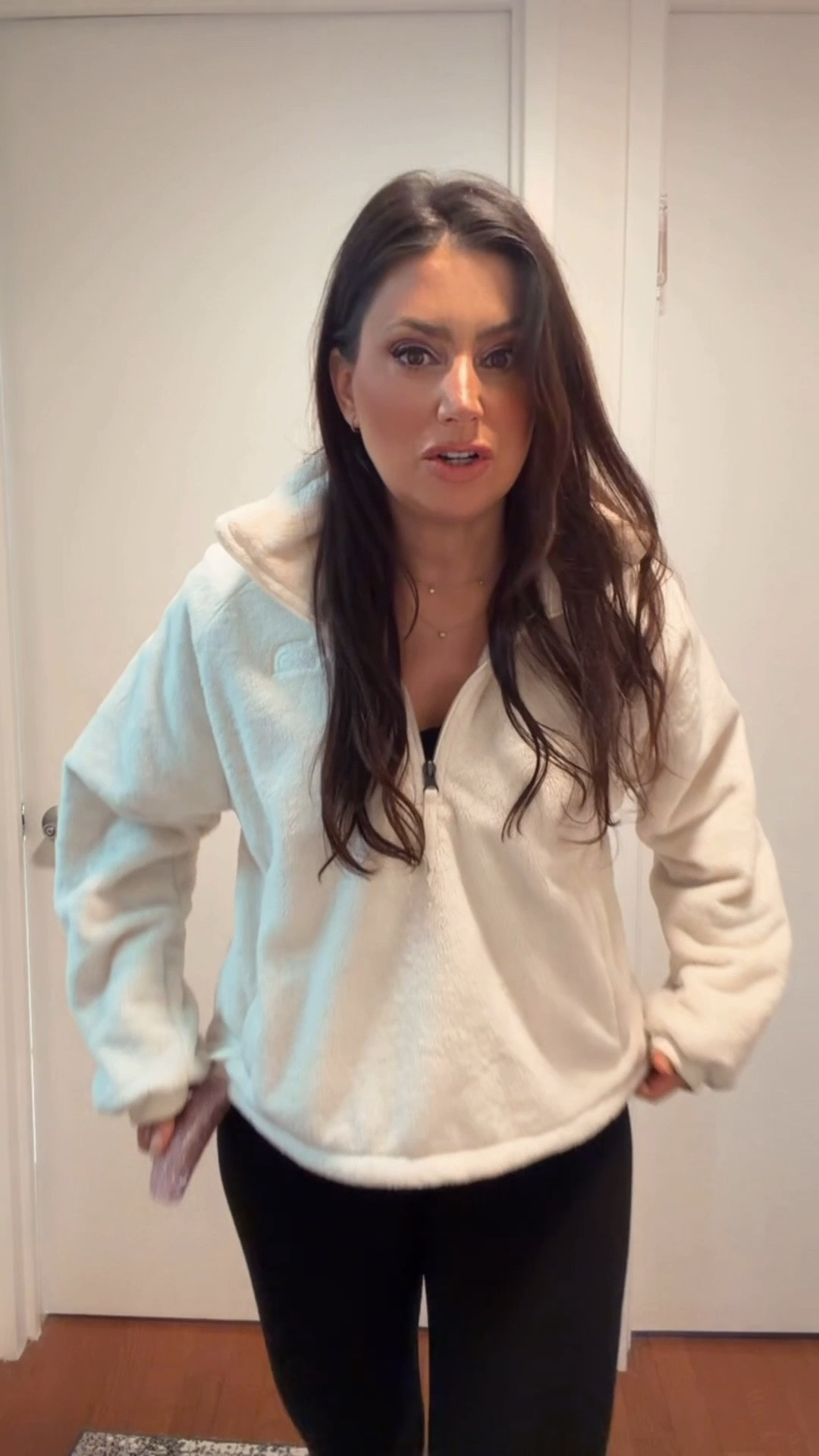 Extra cozy teddy bear fleece half zip from north face size up to XL ( I’m normally a medium) for an over sized look bc it’s cropped and runs small #LTKgrwm #LTKootd #LTKmomlife
