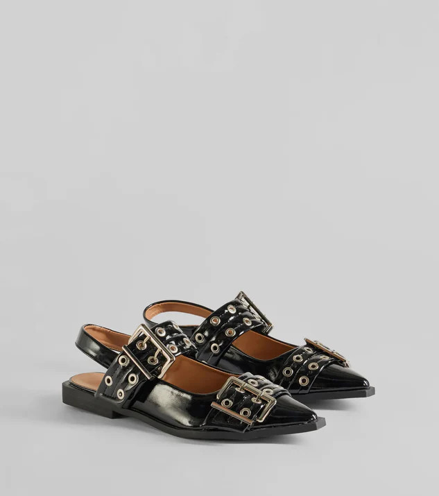 Trendy Look Pointed Toe Buckle Slingback Flats