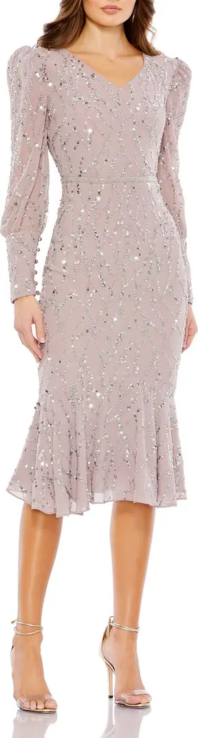 Mac Duggal Sequined V Neck Illusion Long Sleeve Trumpet Dress | Nordstrom