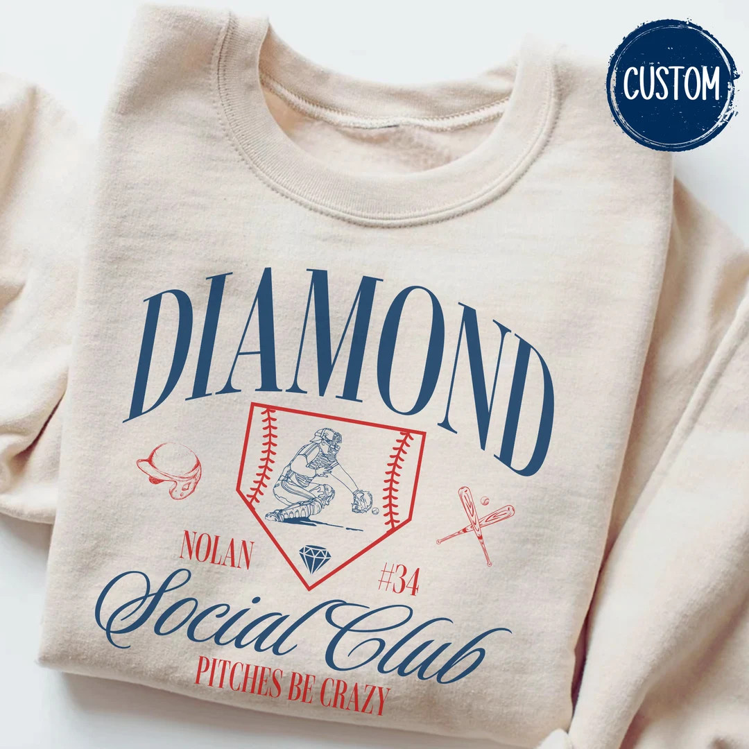 Custom Diamond Social Club Baseball Crewneck Sweatshirt Personalized Baseball Mom Shirt Game Day ...