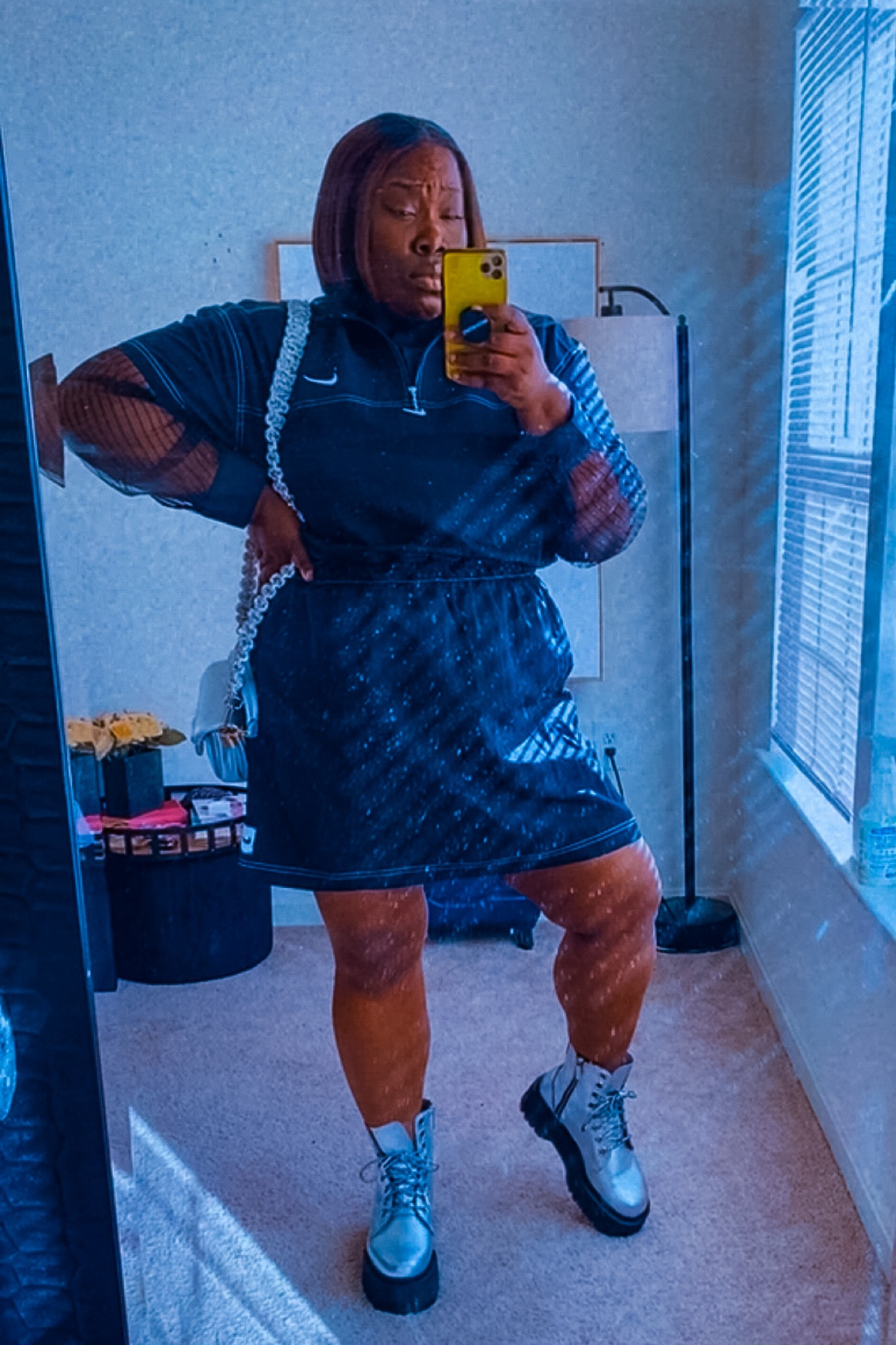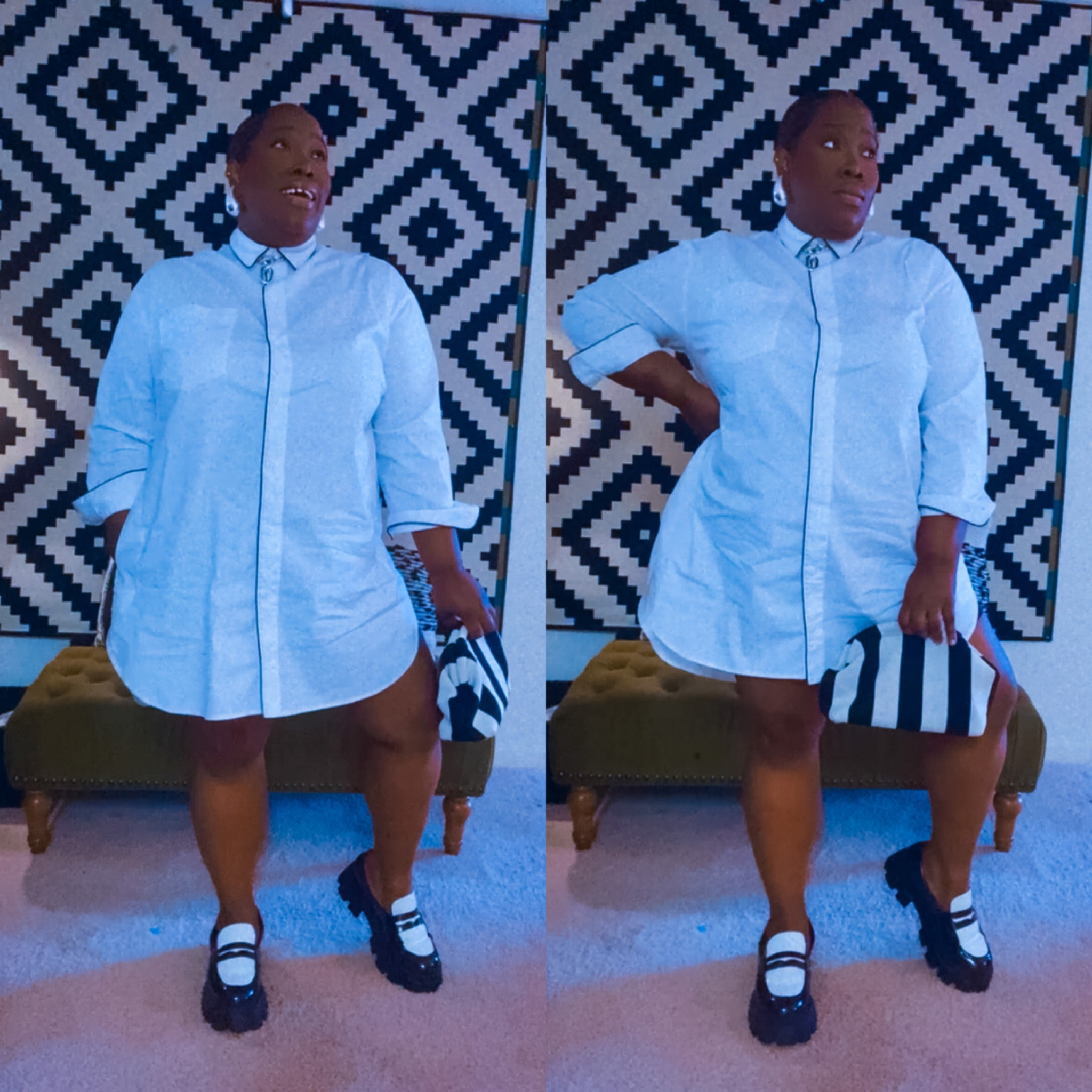Knowing what silhouettes work with your body type does wonders in creating shape. A fit & flare rarely does me wrong. It is fitted at the smallest part of your body and then gives you volume on the bottom. The structure Scoop built into this dress is impressive 👌🏾 and I’m loving their spring collection with Walmart. With the weather being sketchy 😒, I layered it over my sheer tuxedo shirt from Shop Iccon. You can check online to see what stores carry it near you.