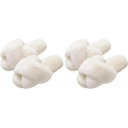 Evshine Women s Fuzzy Slippers Cross Band Memory Foam House Slippers Open Toe