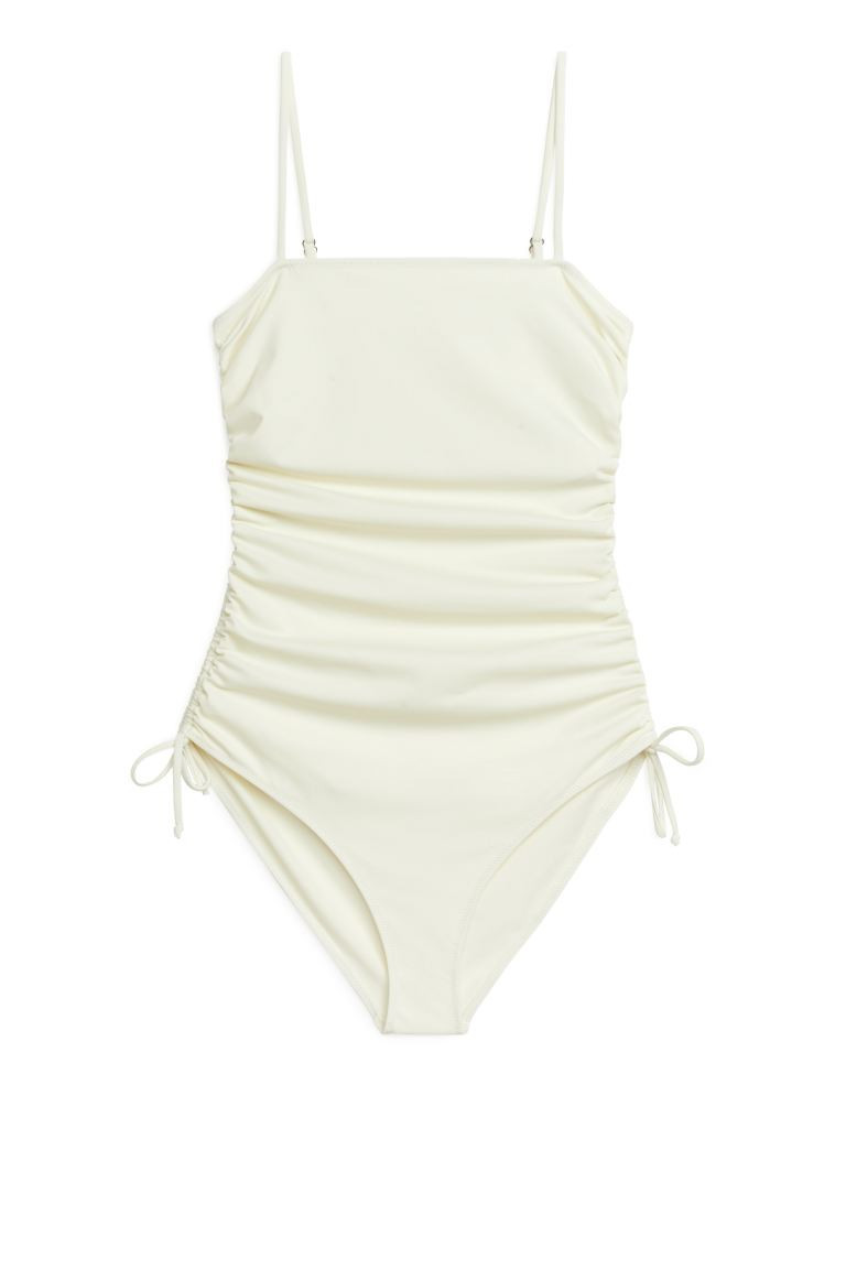 Ruched Swimsuit - Square neckline - Sleeveless - White - Ladies | H&M GB