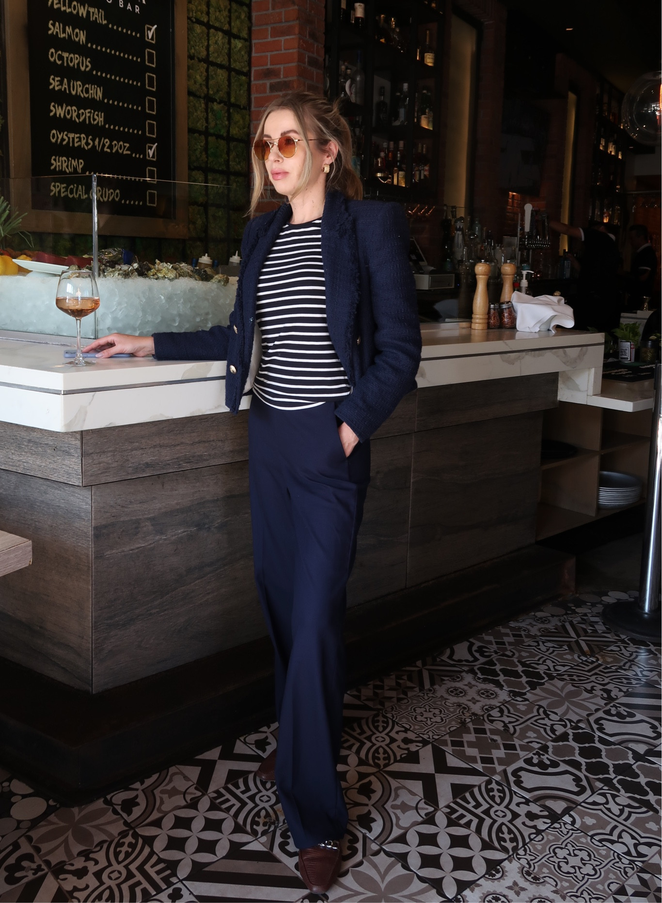 One of my favorite ways to create a chic look with a striped top and blue jacket