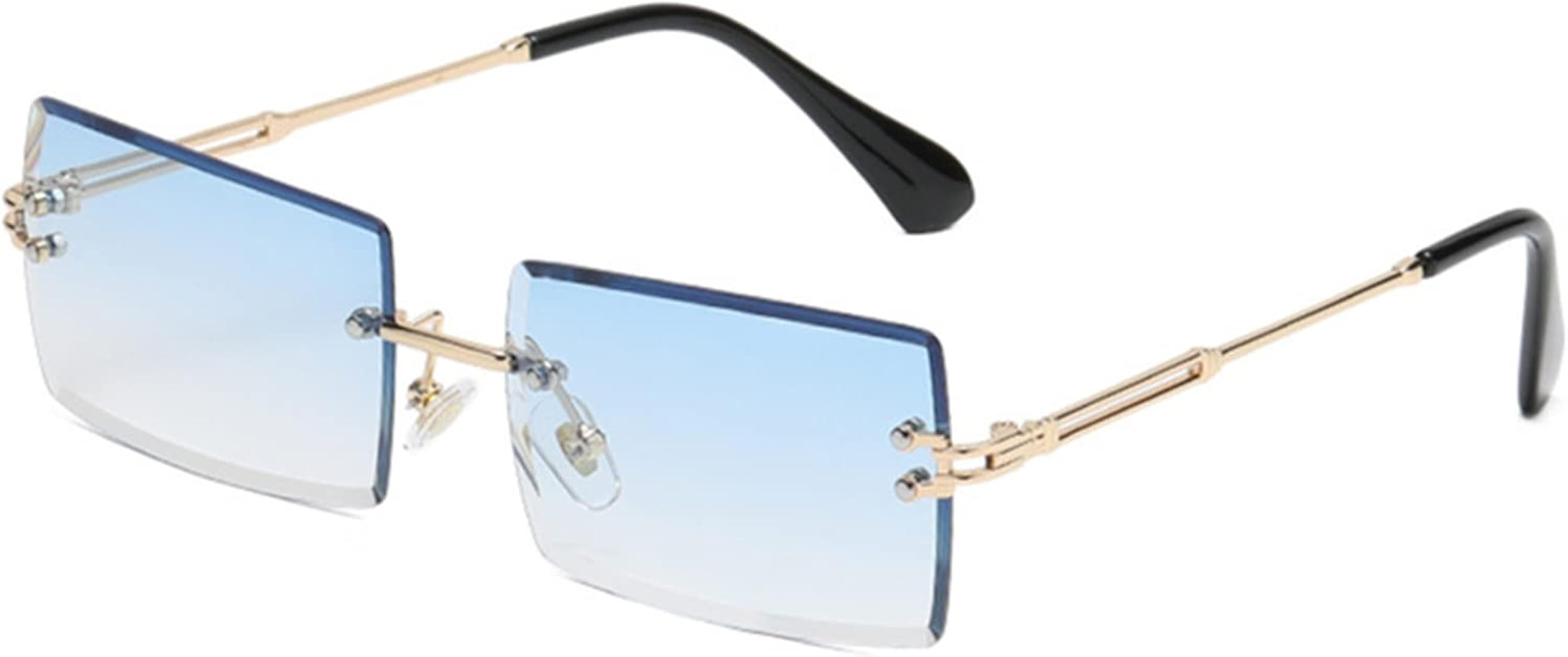 LASPOR Retro Rimless Rectangle Sunglasses for Women Men Tinted Lens Gold Metal Frameless Vintage ...