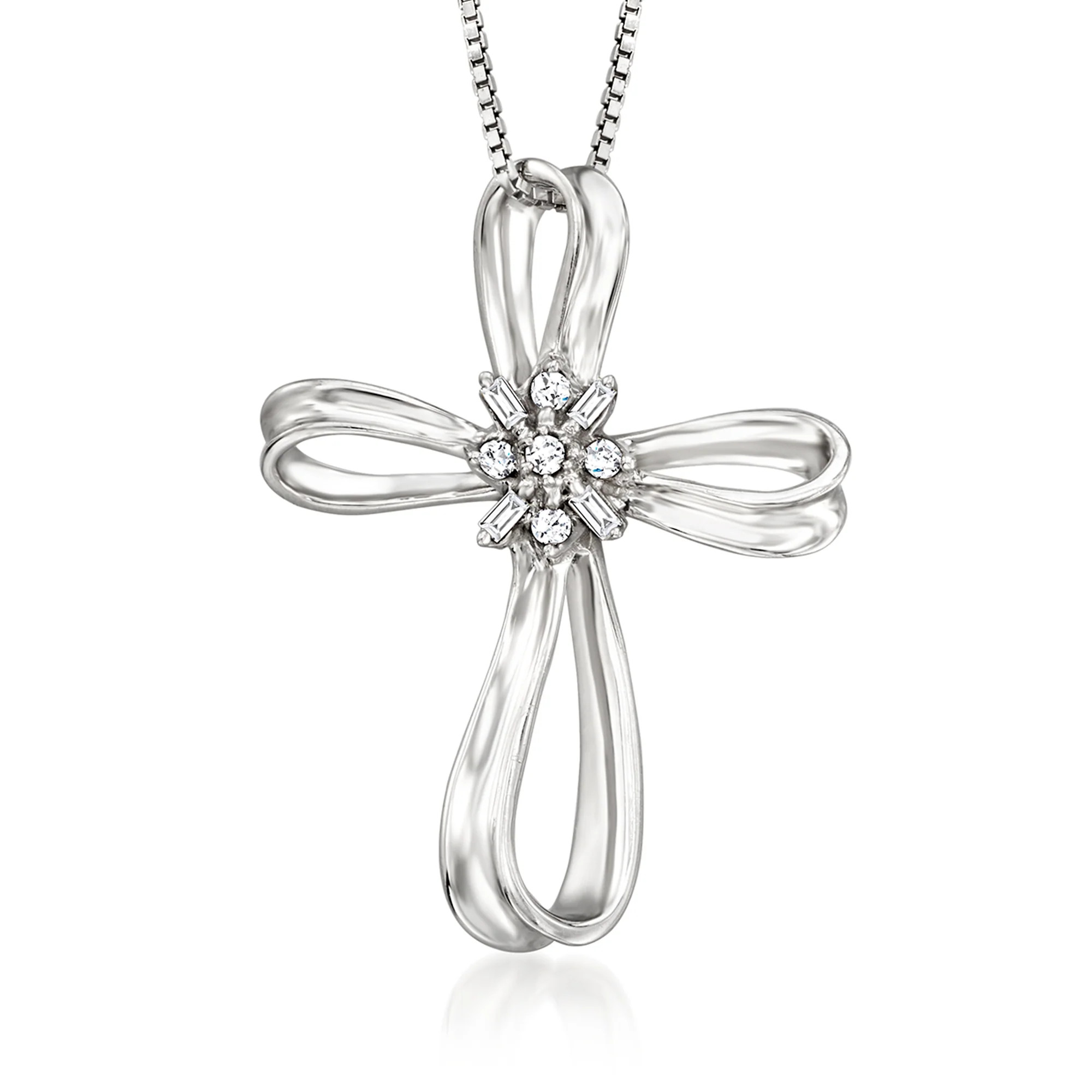 Ross-Simons Diamond Ribboned Cross Pendant Necklace in Sterling Silver