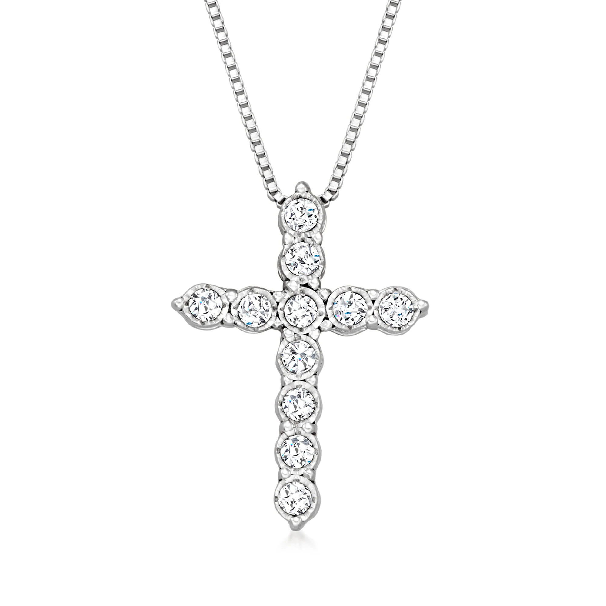 Ross-Simons Diamond Cross Pendant Necklace in Sterling Silver