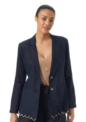 Sam Edelman Women's Enola Scalloped Blazer, Navy Blue, Medium