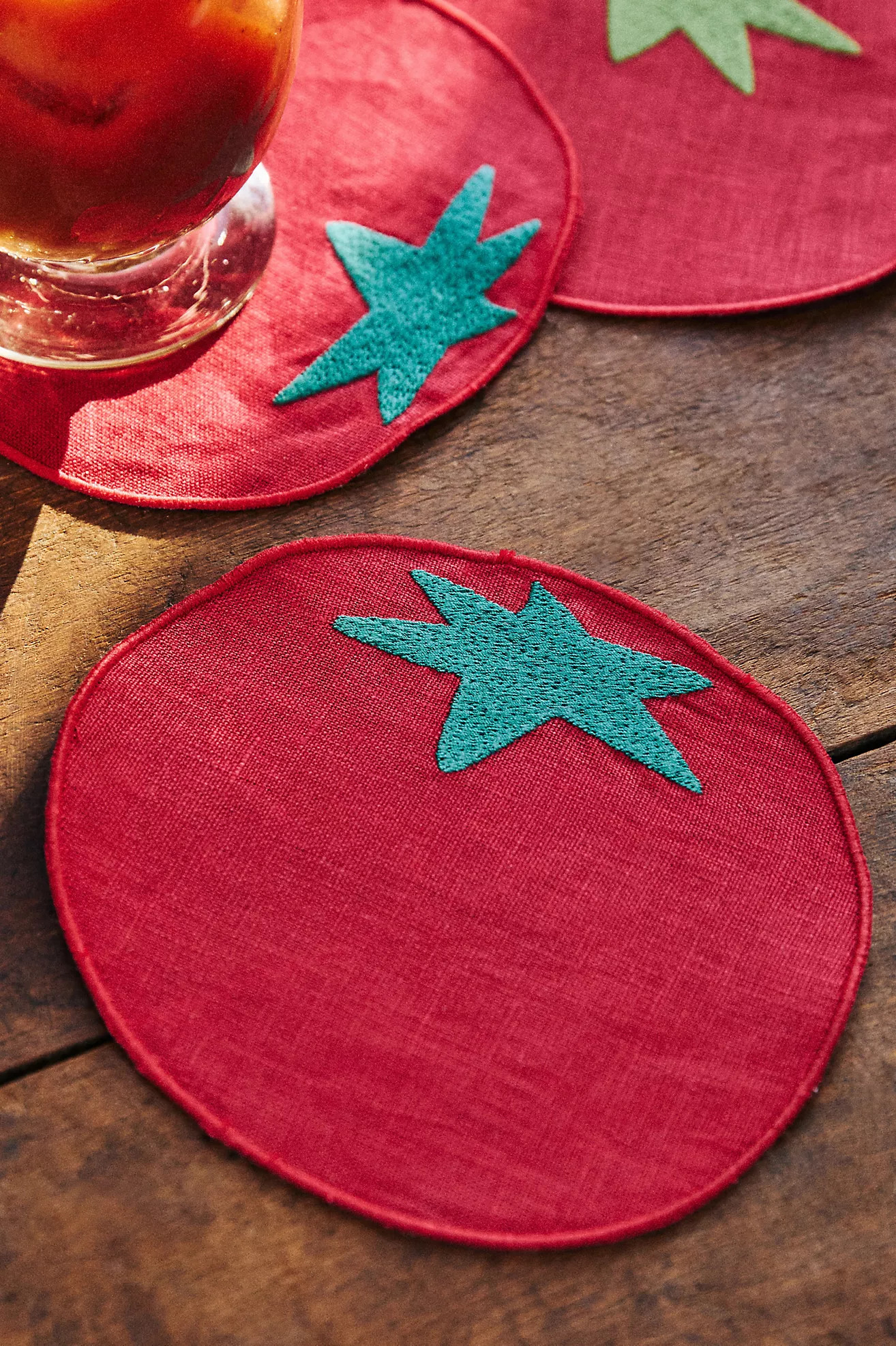 Novelty Piecework Linen Cocktail Napkins, Set of 4