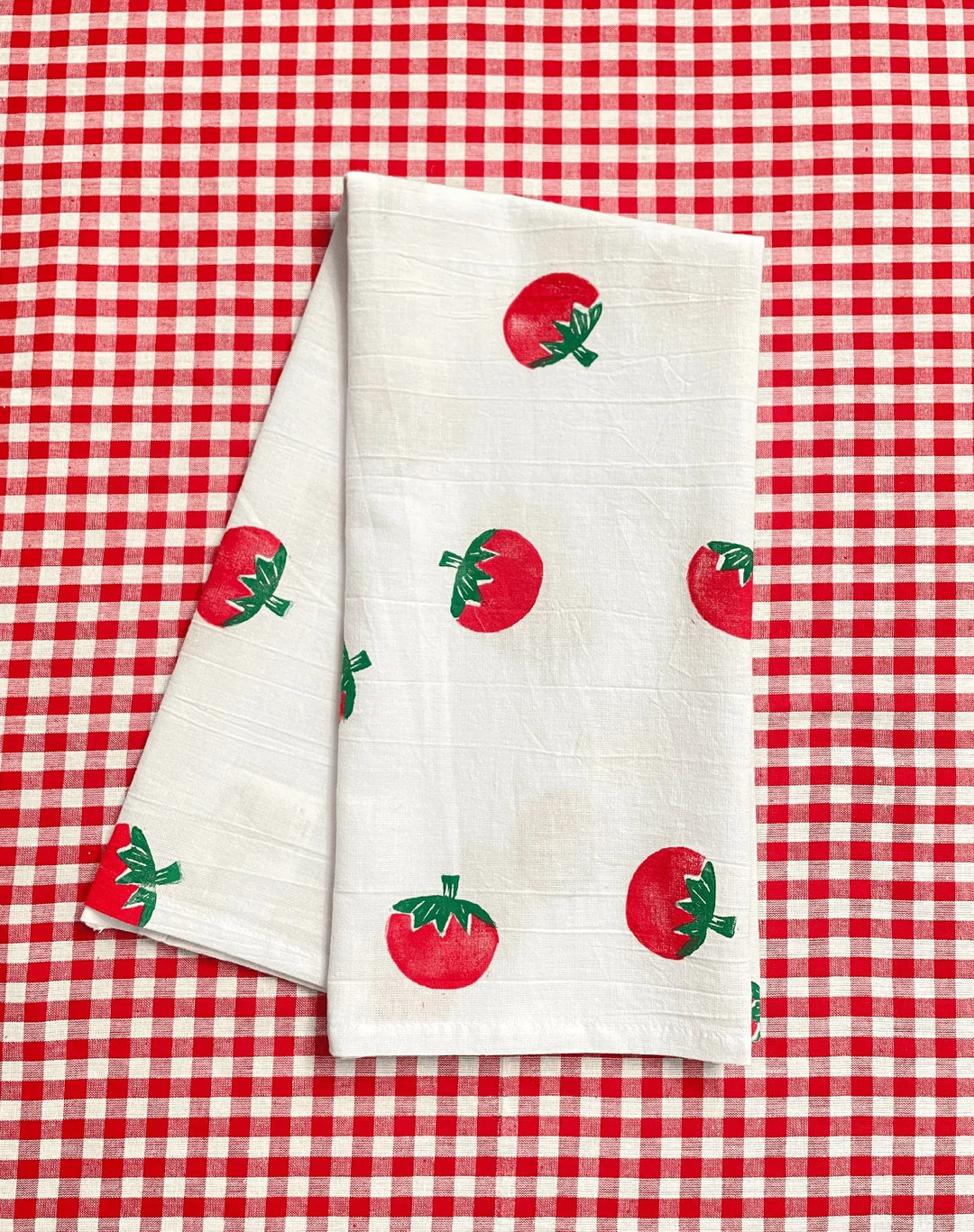 Tomato Block Print Tea Towel, Tomato Home Decor, Handmade Kitchen Linen, Red Green Tomato Print, ...
