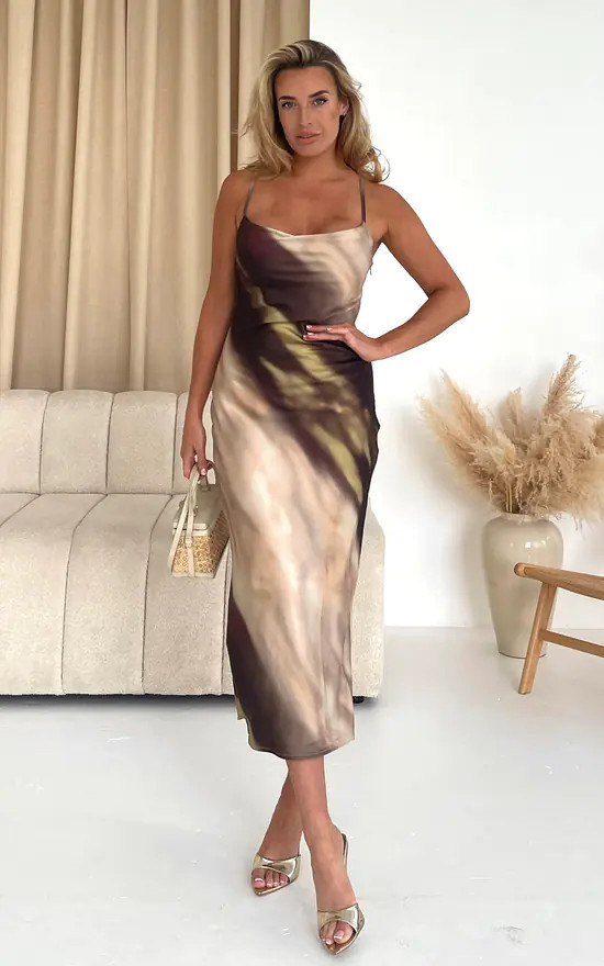 Naomi Brown Slip Midi Dress | Girl In Mind | SilkFred