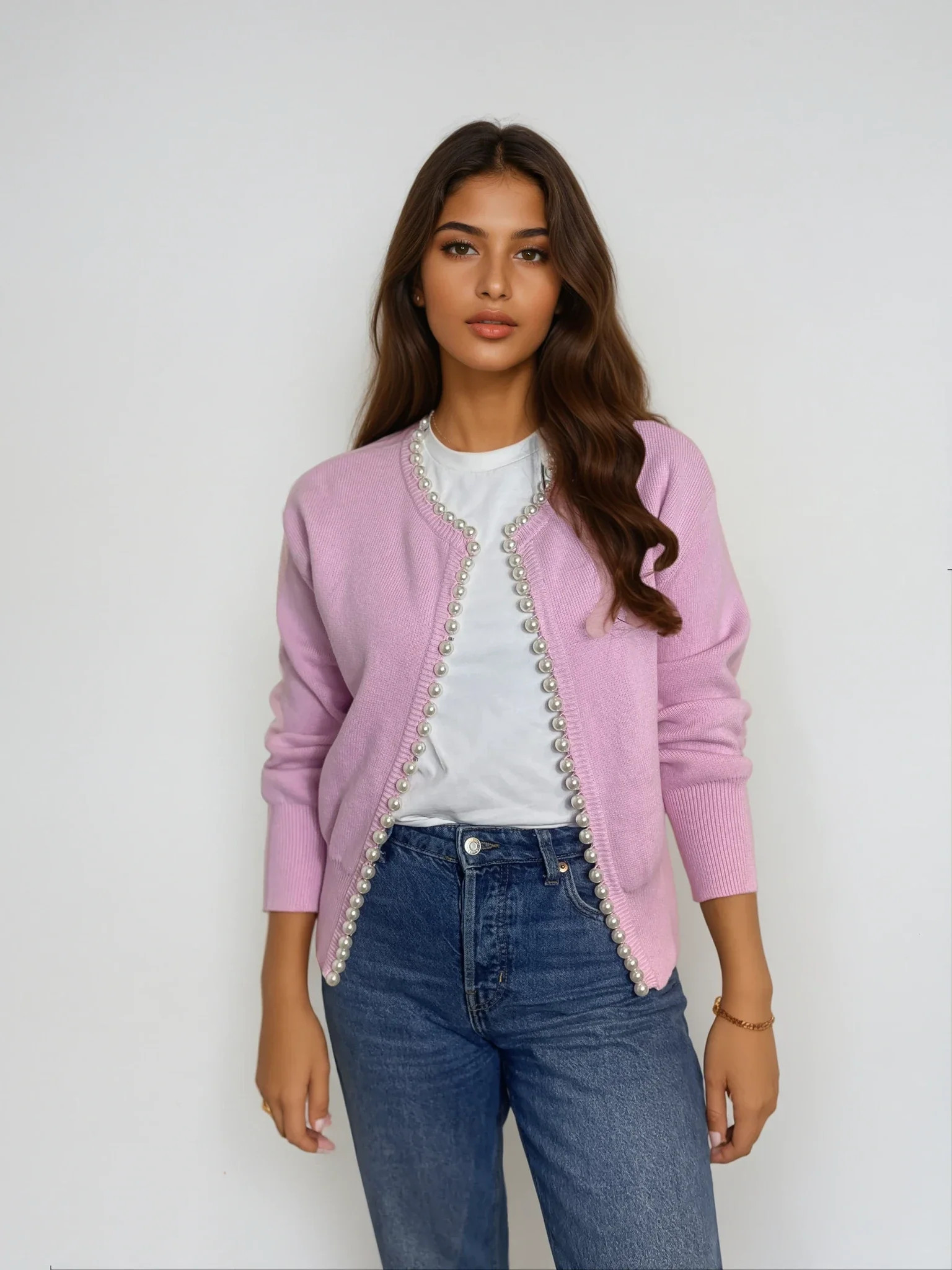 Charlotte pearl trim cardigan in Pink