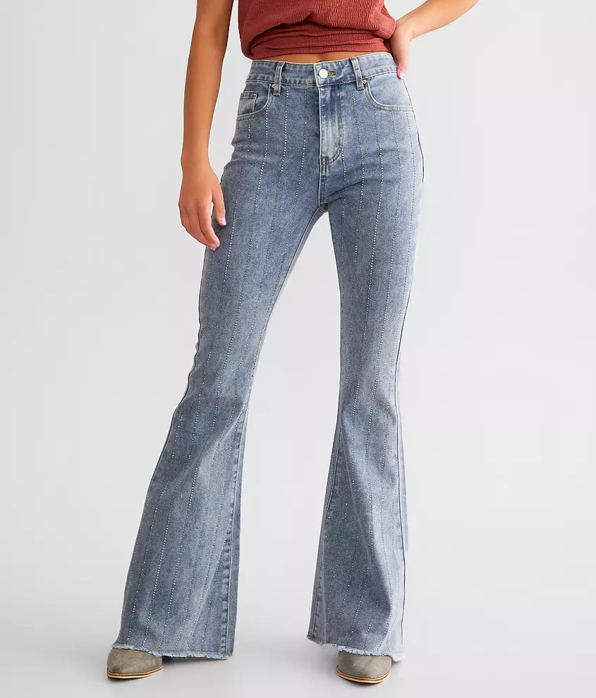 Rhinestone Ultra High Rise Flare Stretch Jean