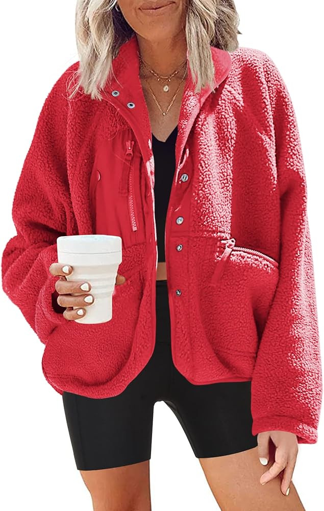 Nirovien Womens Fuzzy Fleece Jacket Button Down Sherpa Coats Casual Winter Warm Outwear with Pock...