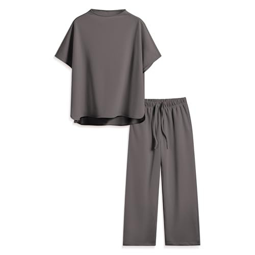 Songling 2 Piece Sets For Women Short Sleeve Pullover Tops and Wide Leg Pants Travel Lounge Matching Set With Pockets(Dark-Gray,S)