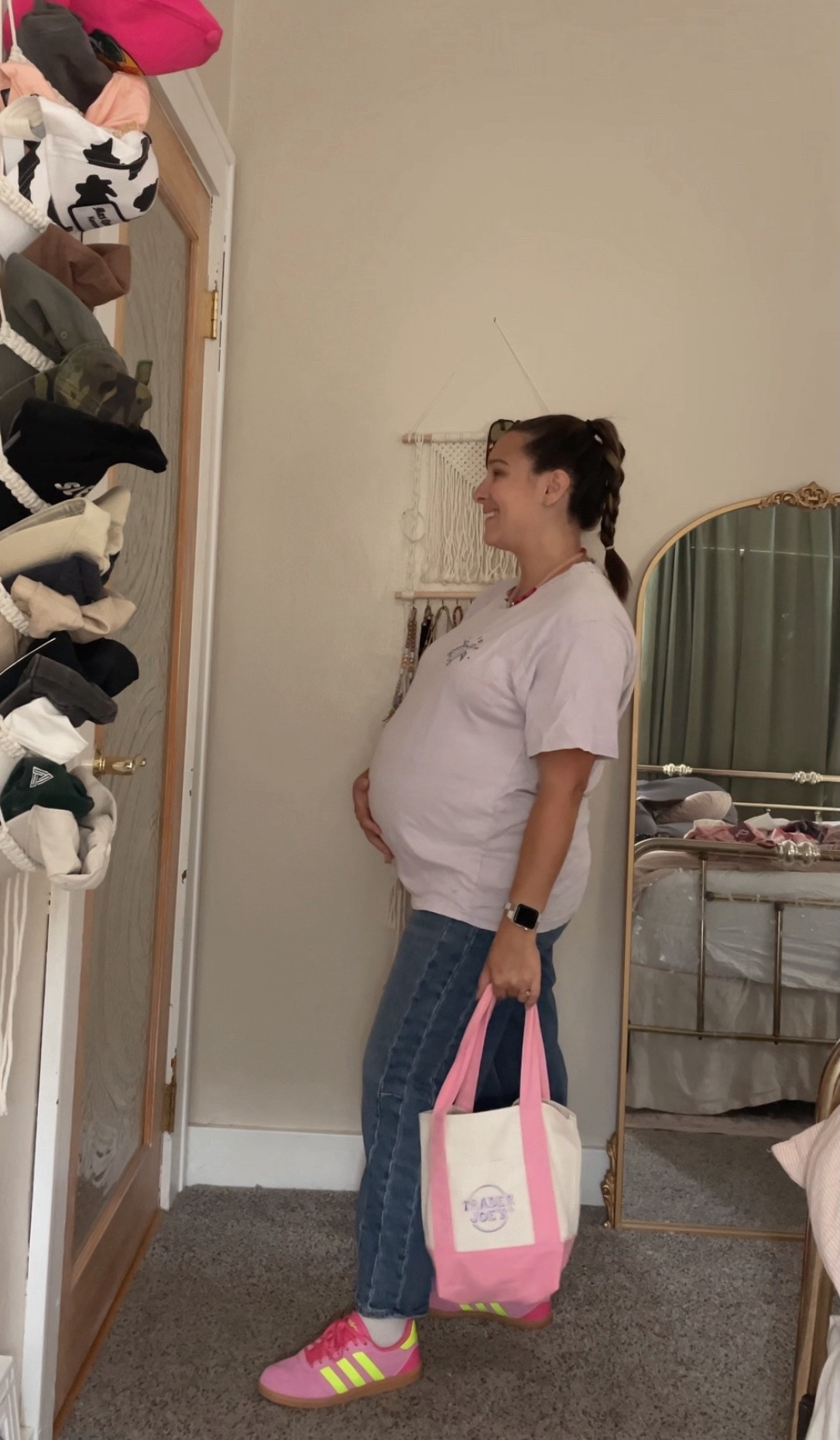 When my cutie toddler is clingy I pull out my tushbaby. This proves that you can use it at 30 weeks pregnant. Itโ€™s still not easy but at least itโ€™s not impossible and provides the closeness for tons of kisses.