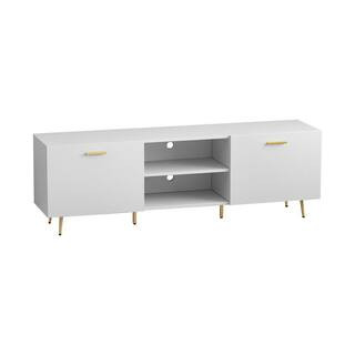 FUFU&GAGA 69 in. W White Wood Entertainment Center TV Stand Console with Door Storage Cabinet for...