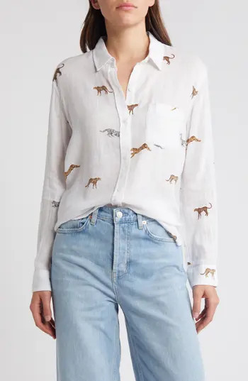 Rails Charli Cheetah Print Linen Blend Button-Up Shirt in Safari Cheetah at Nordstrom Rack, Size Small