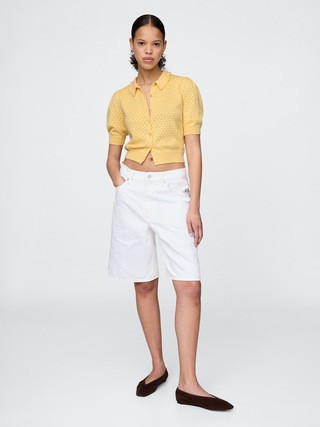 100% Cotton Cropped Pointelle Cardigan