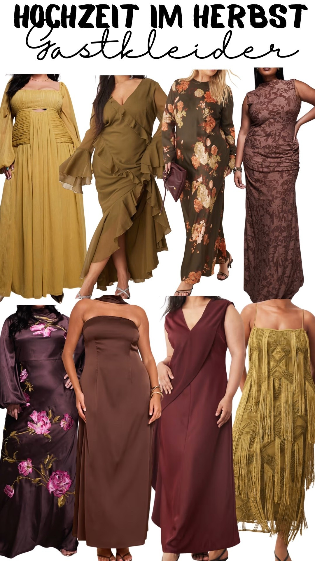 ASOS DESIGN Curve – Maxikleid in Schokobraun mit Schrägschnitt, Blousonärmeln, Blumenstickere... | ASOS (Global)