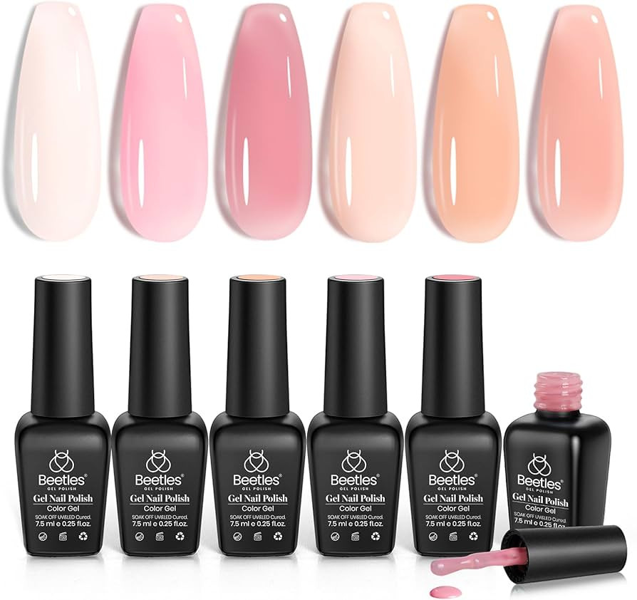 Beetles Jelly Gel Nail Polish Set, 6 Colors Ballet Dress Milky White Sheer Pink Nude Transparent ...