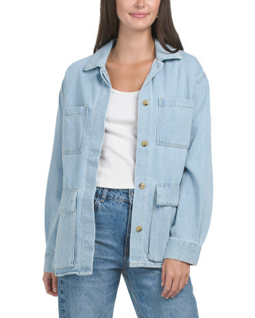 Vixen Long Sleeve Button Up Denim Jacket For Women, Cotton
