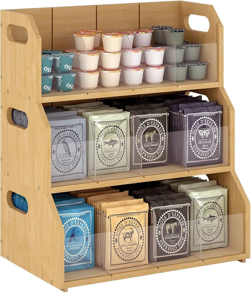 StorageWorks 3 Layer Stackable Bamboo Tea Bag Organizer, Tea Organizer for Tea Bags, Tea Box Orga...