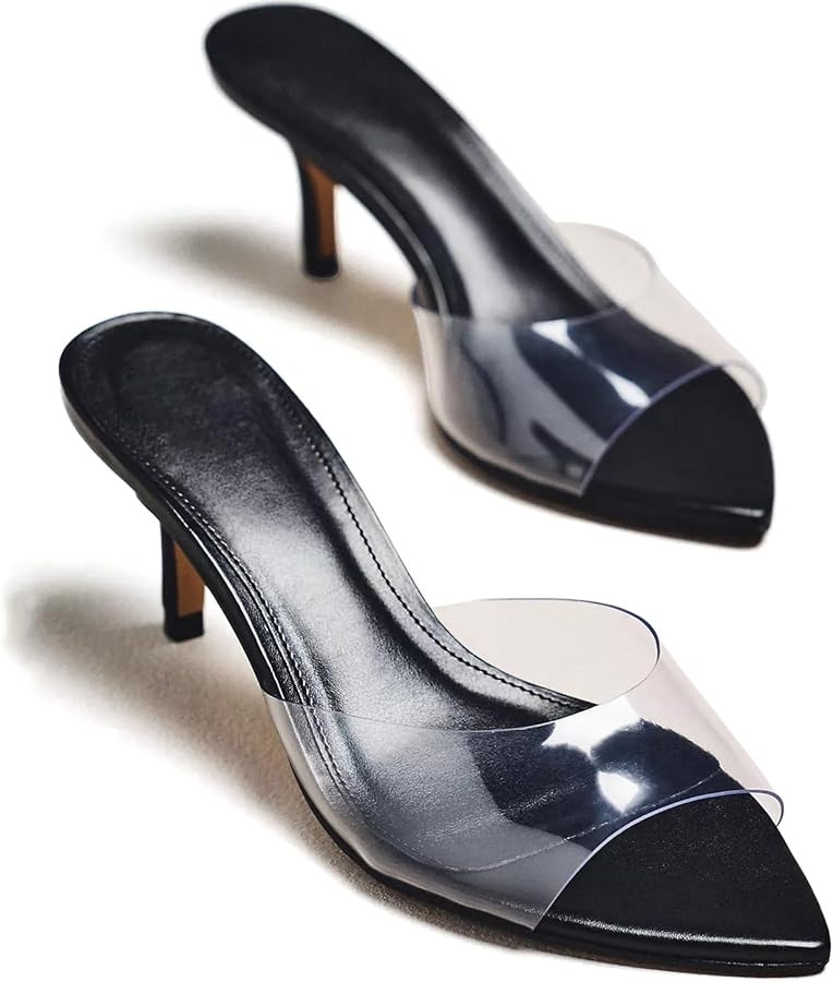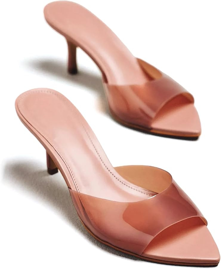 Kitten Heels for Women Mules Pointed Open Toe Heeled Sandals Slip on Dressy Elegant Wedding Party