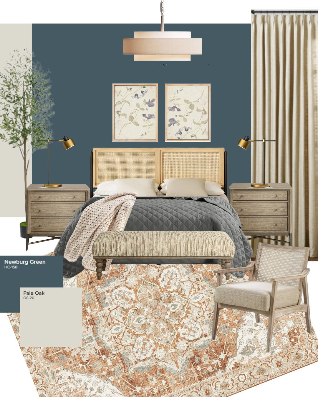 Here's a mood board specifically worked around Sherwin-Williams Evergreen Fog. 🌿
