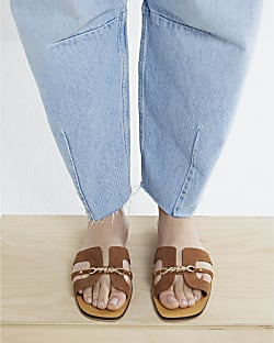 Brown Suede Cut Out Strap Sandals