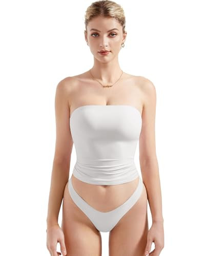 SUUKSESS Women Sexy Tube Top Summer Y2K Going Out Tops Casual Sleeveless Double Lined Basic Tank Top (Snow White, S)