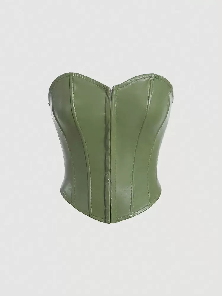 SHEIN x Marika Sila SHEIN MOD Stevige PU-lederen buis Groene haakvormige middentaille vormgevende...