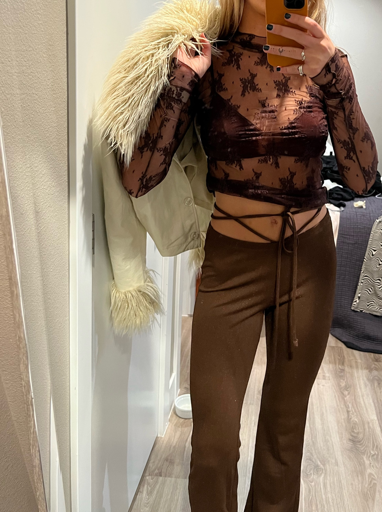 Abercrombie is so cozy. The comfiest jacket & pants  ever. so soft.  25 in pants - medium jacket #abercrombie #leatherpants #sherpa