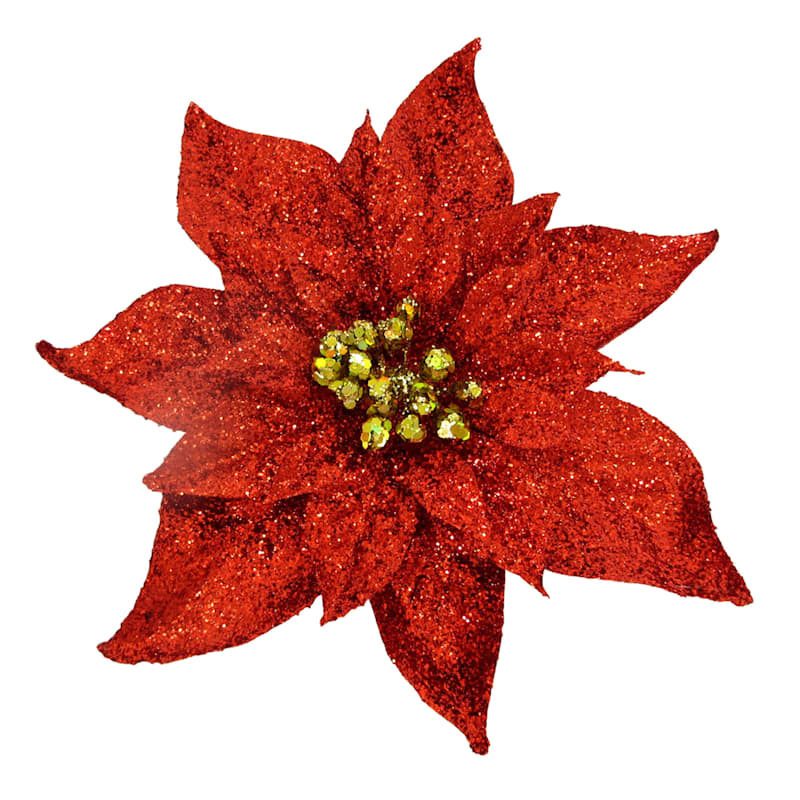 Classic Christmas Red Glittered Poinsettia Clip Ornament, 9.5"